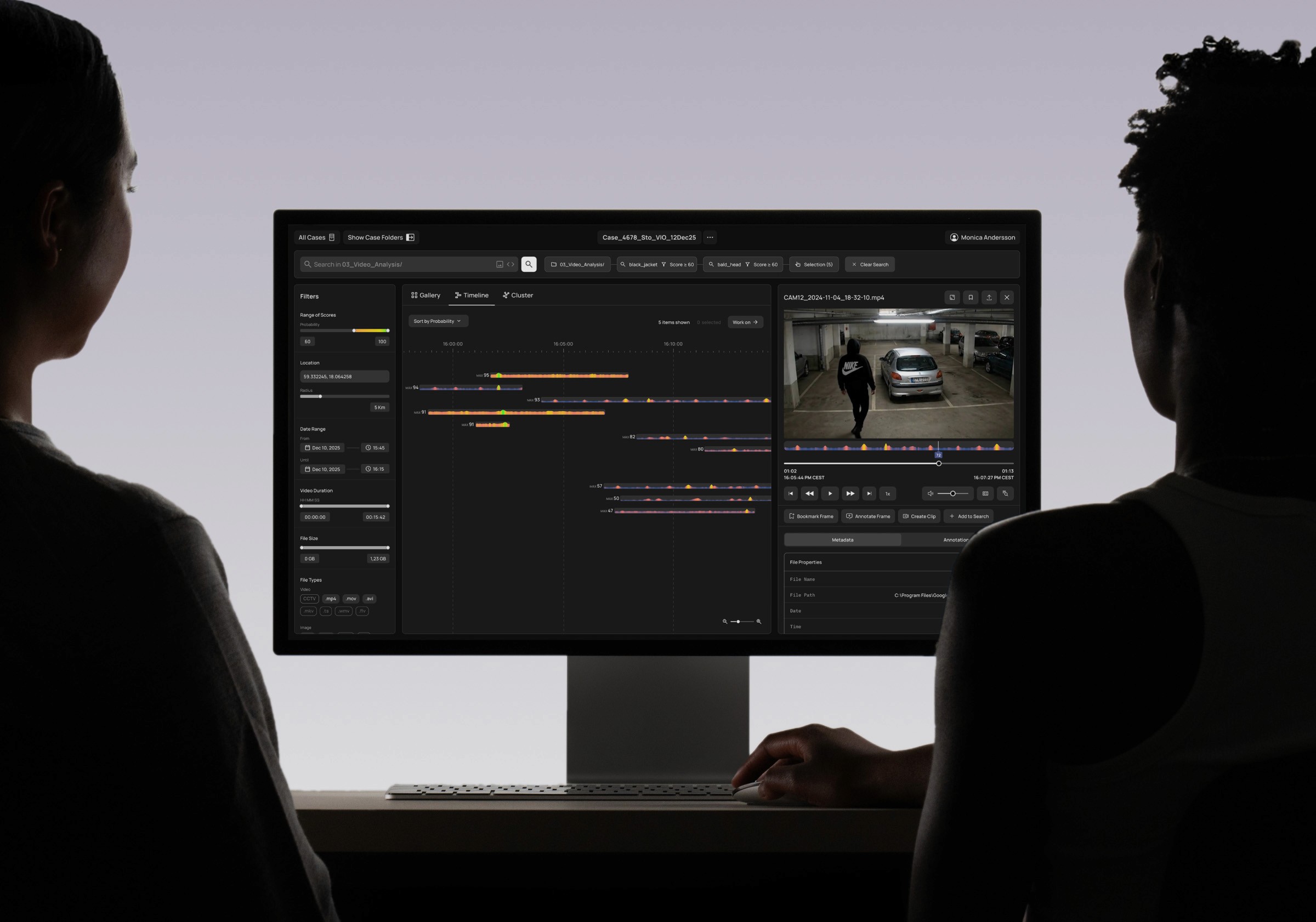 Developed in collaboration with Europol and the swedish police, this project addresses the challenge of processing large volumes of video data in investigative settings. Law enforcement agencies increasingly rely on AI-supported search to navigate evidence collected from diverse sources. The task was to design a user interface that enables efficient, adaptive, and responsible analysis of video material. Grounded in field research, the resulting system supports prompting, filtering, and visualizing data in ways that reflect real investigative workflows.