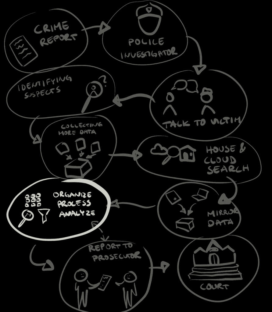 Developed in collaboration with Europol and the swedish police, this project addresses the challenge of processing large volumes of video data in investigative settings. Law enforcement agencies increasingly rely on AI-supported search to navigate evidence collected from diverse sources. The task was to design a user interface that enables efficient, adaptive, and responsible analysis of video material. Grounded in field research, the resulting system supports prompting, filtering, and visualizing data in ways that reflect real investigative workflows.