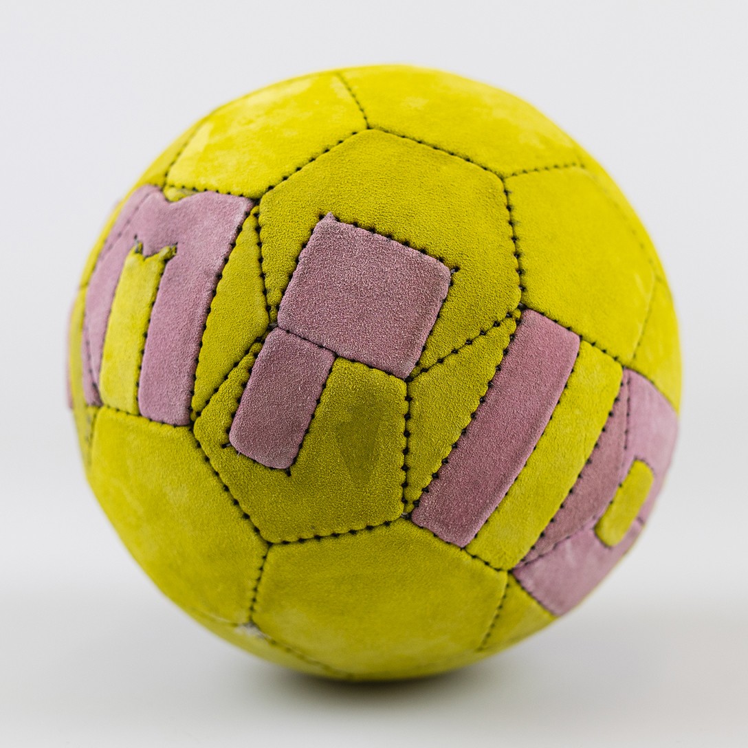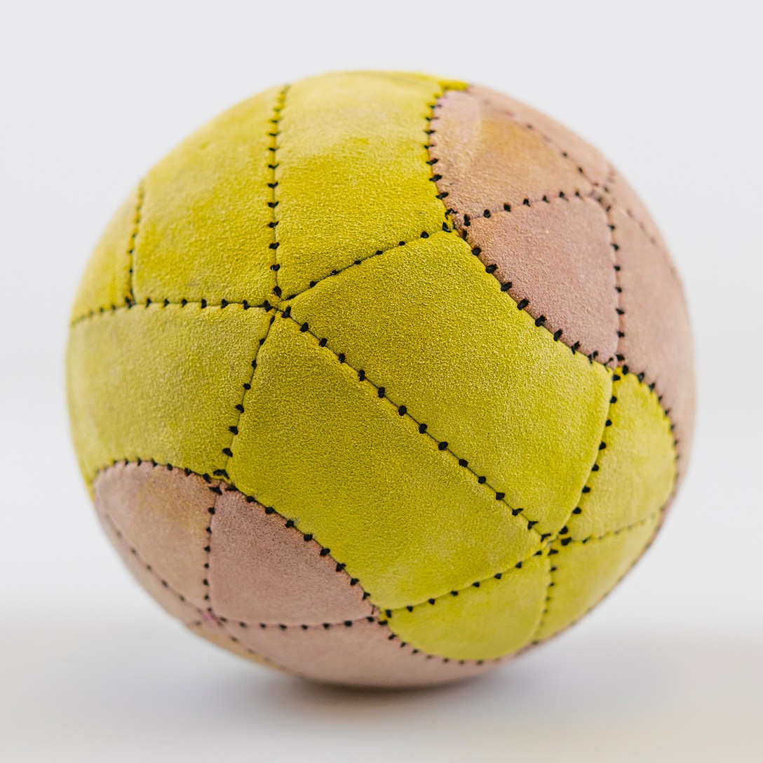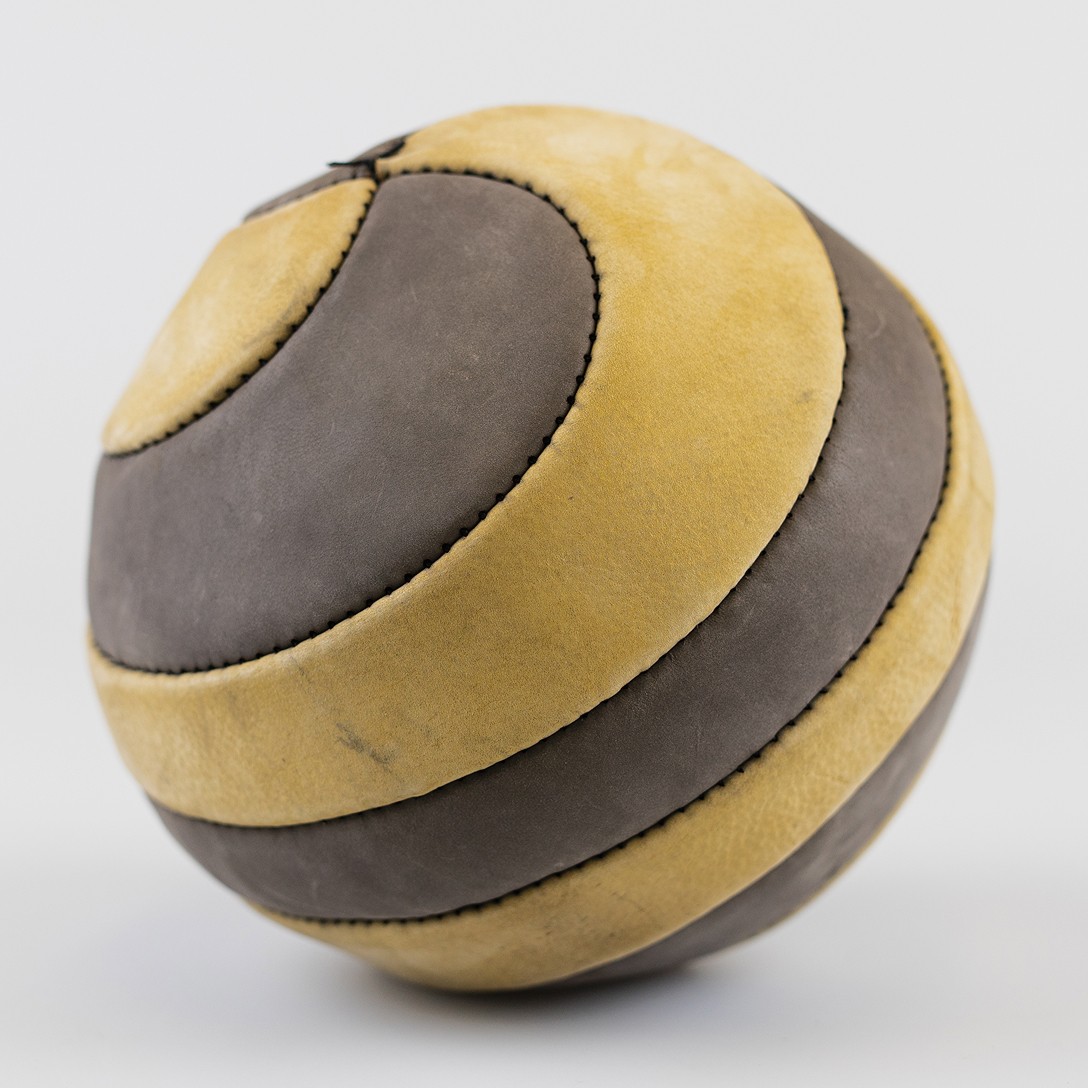 Each design starts with sketches and a 3D model in Blender to define the geometry. The faces are flattened, exported, and prepared in Illustrator for laser cutting. The leather panels are then sewed together by hand until the ball takes shape.